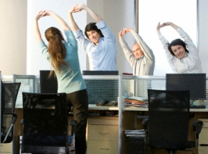 Các bạn có thể đứng lên tập cùng mọi người trong giờ giải lao