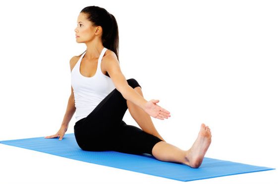 Động tác Yoga Seated spinal twist hay ngồi và xương sống được xoay. Bạn sẽ ngồi ở trên sản tập, hai chân để dang rộng phía trước, hít thở bình thường thoải mái. Sau đó co gối bên phải để theo vị trí phần gót sát mông. Chân trái cũng co gối lại vòng qua chân phải, phần mắt cá sẽ sát với đầu gối phải. Tay bên trái thì để trên thảm phía sau của lưng, tay phải thì nắm lấy chân bên trái chỗ vị trí mu bàn chân.