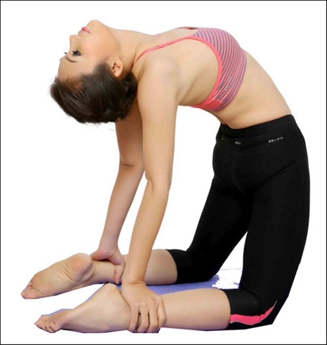 Phương thức tập: tiến hành với tư thế quỳ, 2 đùi để cách nhau 1 khoảng bằng vai, duỗi thẳng 2 chân. Để 2 tay ở lưng dưới, hít mạnh rồi ngửa đầu về sau từ từ, thở ra, đưa 2 tay nắm hai cổ chân, lưng cong xuống, ngực và bụng ưỡn về phía trước.