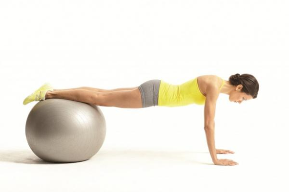 Tư thế này giống với tư thế chống đẩy như bình thường, có điều thêm sự hỗ trợ của bóng tập.